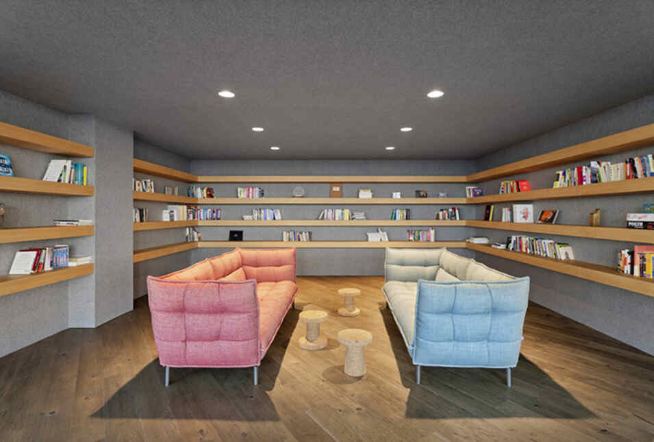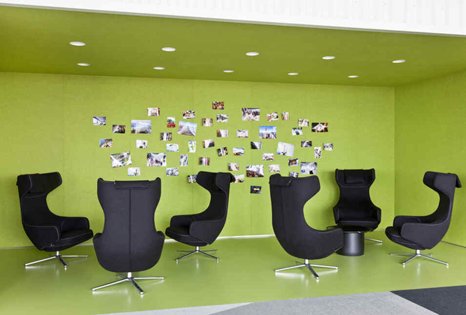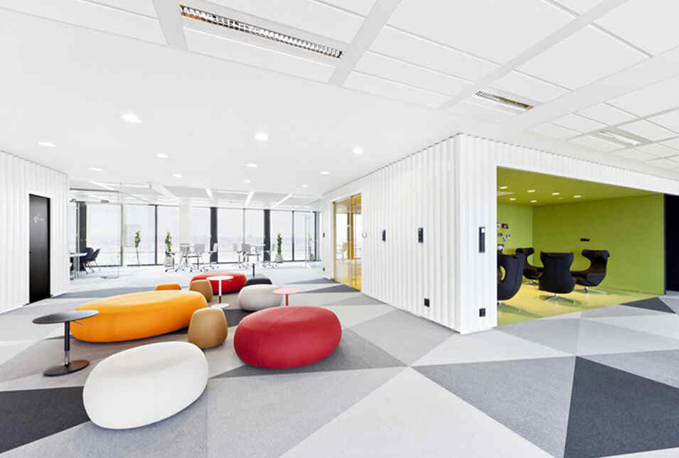 设计介绍:好玩的办公室,体育馆、娱乐室、游戏室、创造放松的空间,石头型的多彩座椅,更显趣味性,粉色的沙发是休息的法宝,并且设置的有图书馆,供人们休息室查阅,软装的座椅舒适,实用,还有用餐区,木质的座椅更加安全,健康,照片墙以绿色为背景显得清晰明了,人性化,设计了体育馆,员工们健身娱乐。