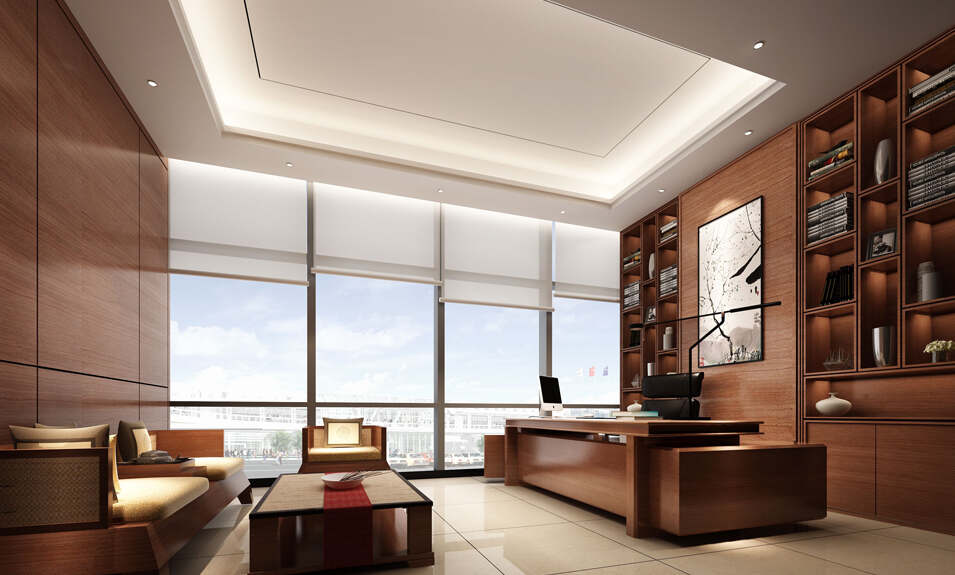 设计介绍:现代简约凝重风如何展现?设计师们运用棕色的色调表现出凝重感,顶部圆形中国风网状带有悠久的中国艺术,天圆地方设计,使人一进入到这个办公室给人与专业、理性的感觉,这点特别符合公司的企业文化。